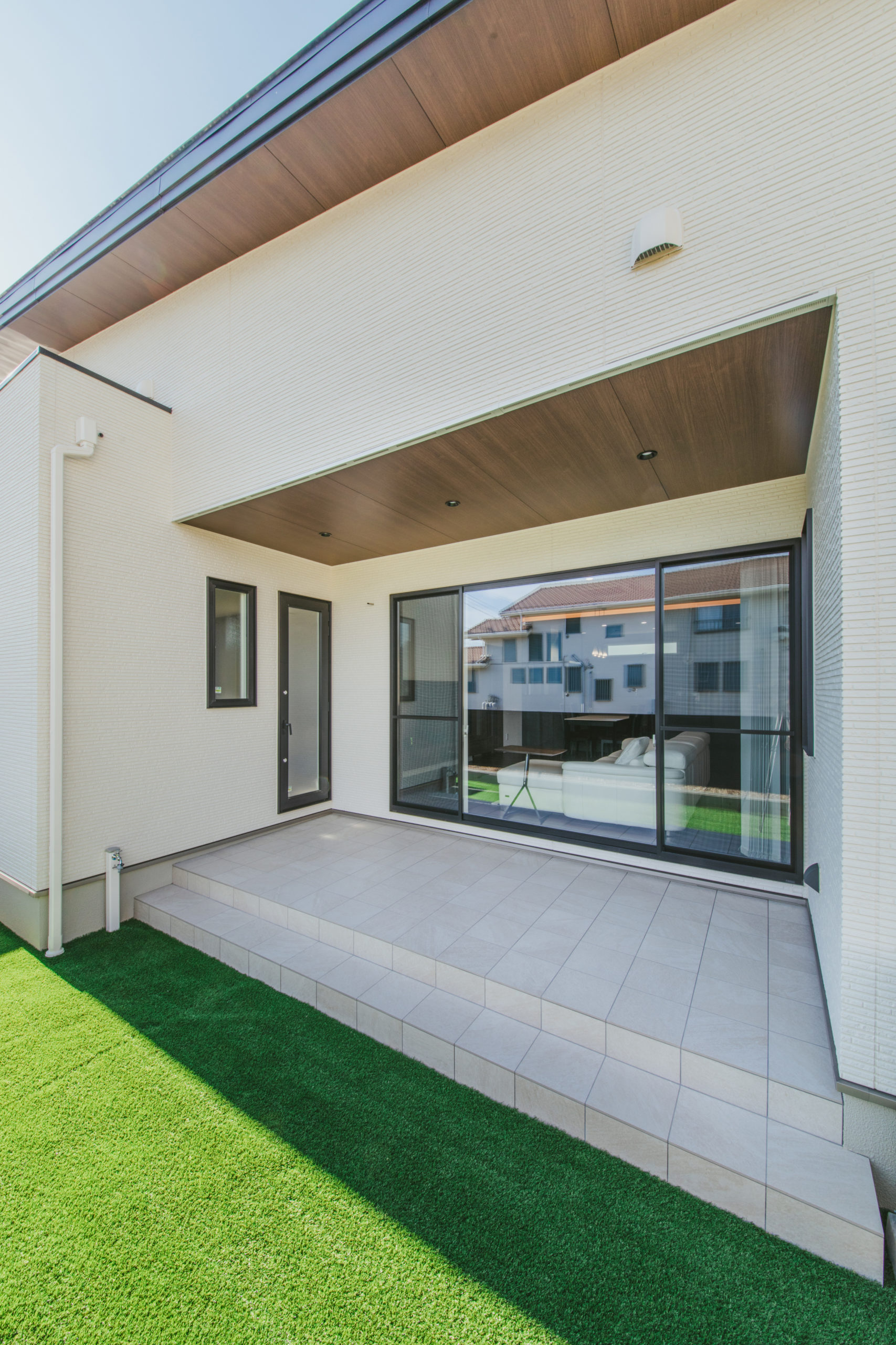 お庭には奥行のあるタイルテラス。