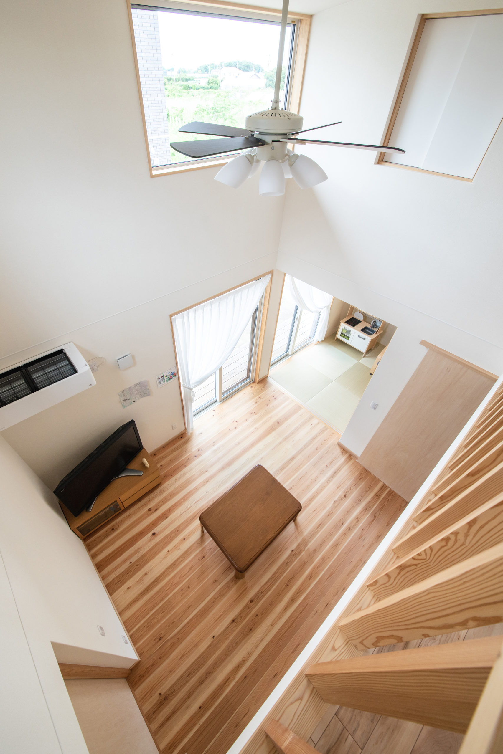 大きい吹き抜けのあるリビング。
