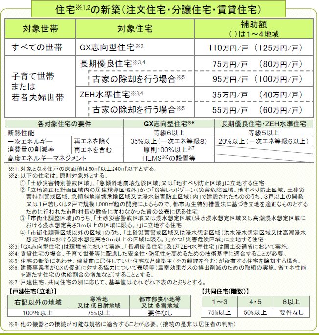 特に GX志向型住宅 はすべての世帯が対象で、性能も補助額も最上位です。